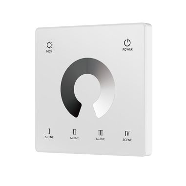 Cette télécommande radio se fixe à l'emplacement d'un interrupteur classique. Elle est dotée d'une portée de 30 mètres et permet le pilotage d'une zone. L'association peut être effectuée avec un ou plusieurs récepteurs. Elle est constituée d'une vitre tactile permettant les réglages.