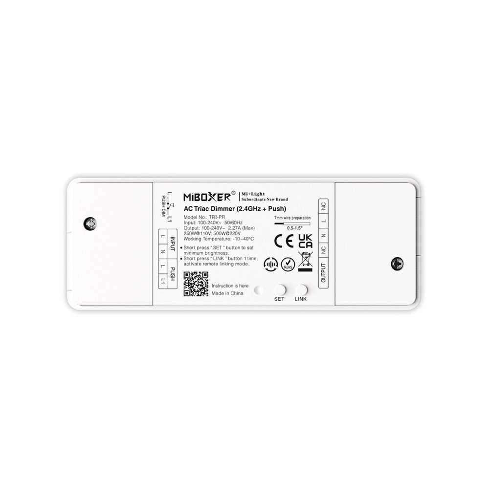 Ce module permet de contrôler un spot LED ou un ruban LED ou une ampoule LED 230V et de les faire varier. Le luminaire doit obligatoirement être variable en 230V (TRIAC). Il se connecte à un bouton poussoir (pas ON/OFF). Il se commande :