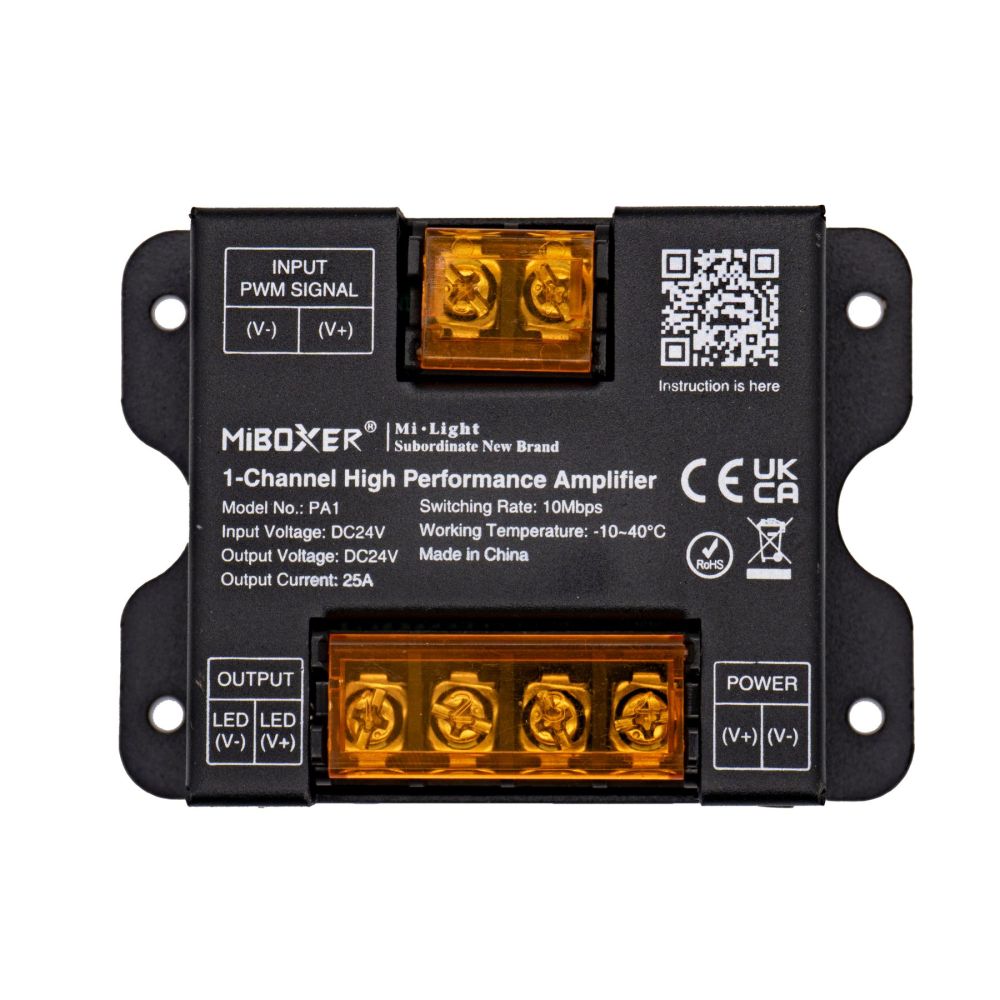 Permet d'amplifier le signal d'un variateur LED lorsque celui-ci n'est pas assez puissant. Par exemple :