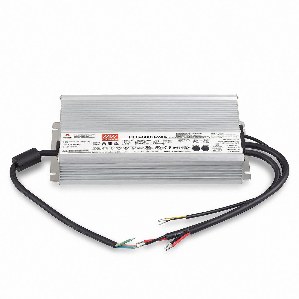 Avec cette alimentation HLG-600H-24A, il est possible d'alimenter des installations de rubans de LED puissants sur de grandes longueurs.