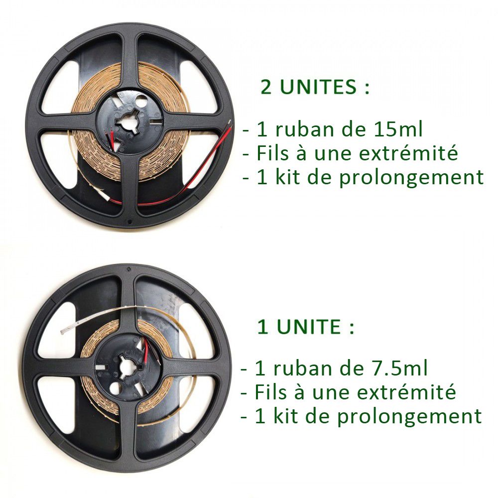 • 1 unité commandée = un fils d'alimentation + 7.5ml de ruban + terminaison scellée