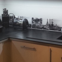 Réalisation d'un éclairage de plan de travail de couleur sombre (noir, anthracite...) avec un profilé aluminium qui se fixe grâce à du double face.