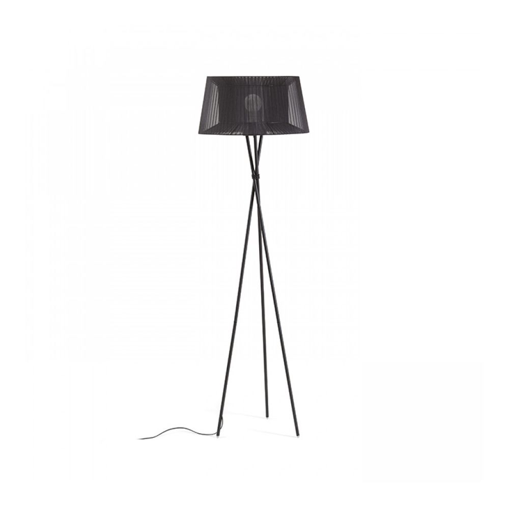 Ce lampadaire produit une lumière douce et diffuse grâce à son diffuseur et son abat-jour textile noir.