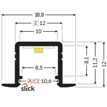 Profilé plat fin à encastrer pour rubans LED disponible en barres de 2 mètres. Il est disponible en 3 couleurs: gris anodisé, noir anodisé ou peint en blanc. Il est livré avec deux types de diffuseurs au choix.