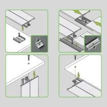 Ce profilé plat pour montage en applique permet de placer un ruban vers le haut et un autre vers le bas. Il peut être utilisé avec des supports de fixations ou peut être collé (double face en option). Les diffuseurs plats doivent être glissés mais ne sont pas forcement utiles. Il peut être utilisé avec des guides de prolongements afin d'aligner les profilés entre eux.