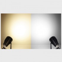 Le spot RGB+CCT à LED peut être piqué ou vissé. Il est possible de régler la couleur ou la teinte du blanc et de choisir la luminosité avec une télécommande (voir rubrique accessoires plus bas dans cette page). Il vous permettra de réaliser de multiples points lumineux colorés ou blancs dans votre jardin. Il offre une luminosité de 550 avec un angle assez étroit pour une bonne puissance d'éclairage.